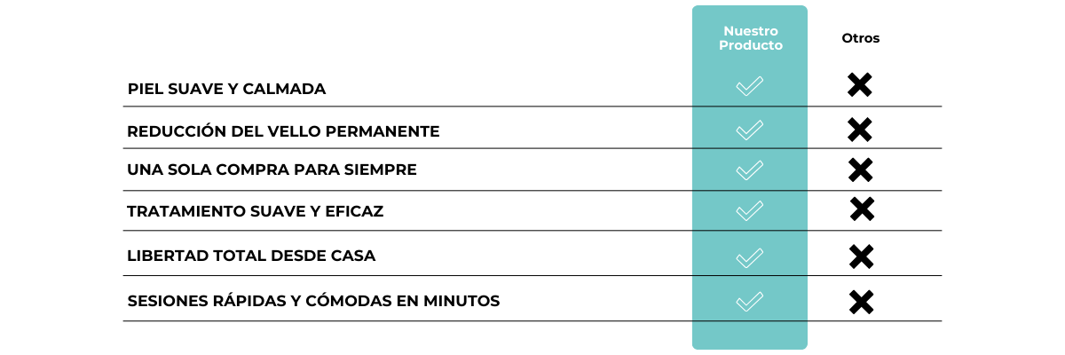 Disfruta de una piel lisa, uniforme y sin vello en piernas, axilas, cara o zona íntima. Siente la libertad de ponerte lo que quieras, cuando quieras, sin preocuparte por el vello. La próxima vez que toques tu piel… te enamorarás de su suavidad. Nunca más esconderás tus piernas. Ni tus brazos. Ni tu confianza.